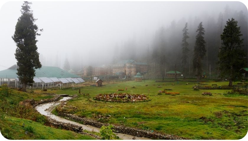 fields with rivers flowing on one side. in Sonamarg you can visit